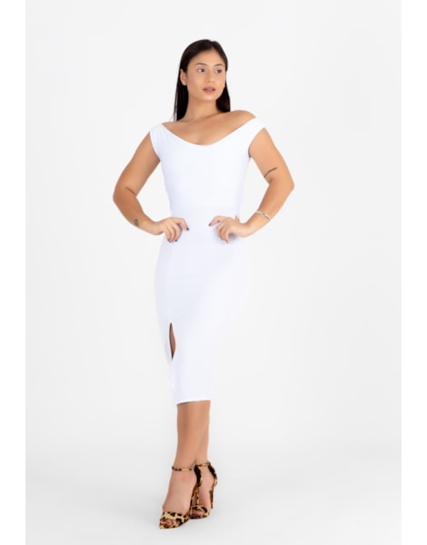 Vestido Midi Tubinho com Fenda e Manga Única Preto | NR22