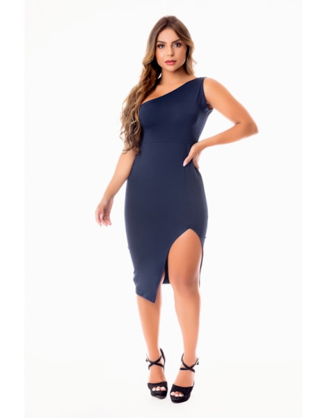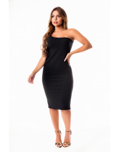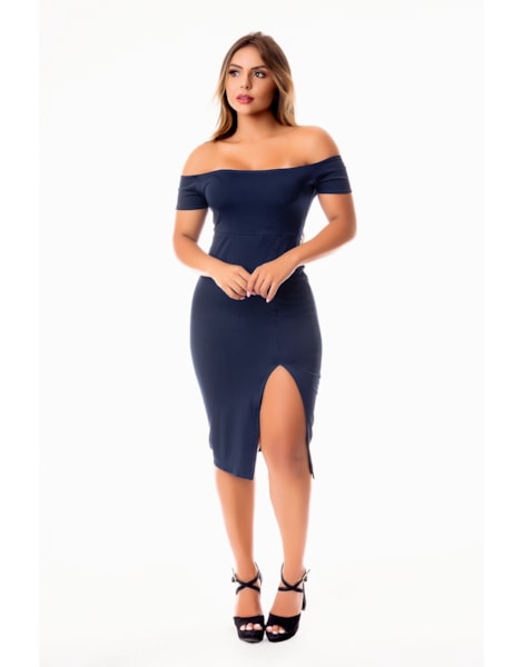 Vestido Tubinho Midi Social Ombro a Ombro com Fenda Social ou Dia a Dia REF: STY40